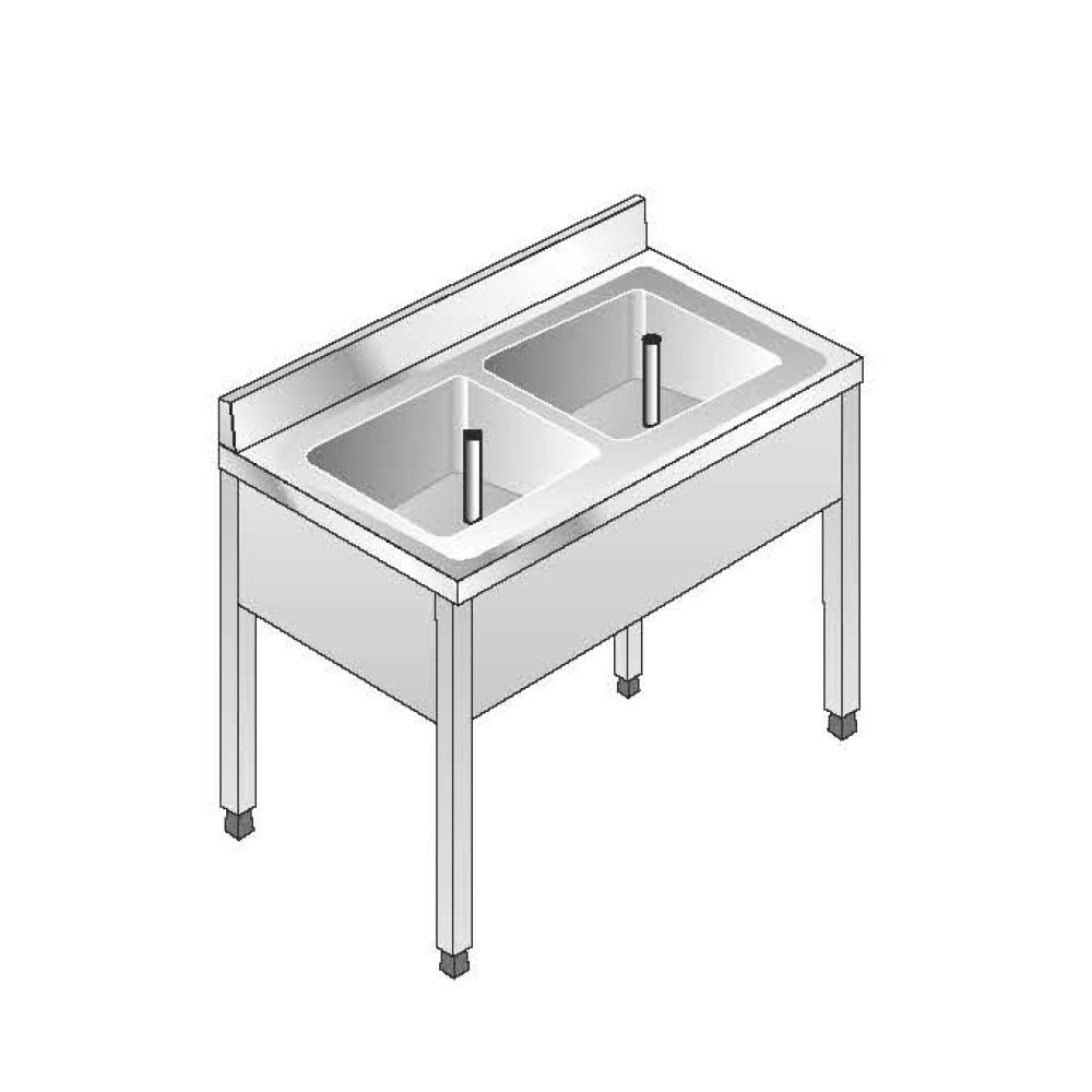 Lavello Acciaio Inox AISI 304 - 2 Vasche - Dim. 120x60x85 cm - con Alzatina -35%