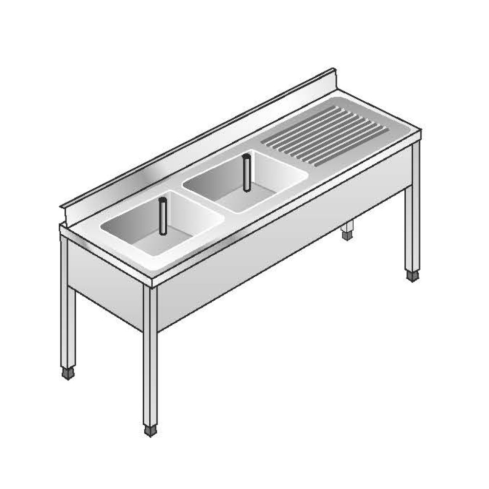 Lavello Acciaio Inox AISI 304 - 2 Vasche DX - Sgocciolatoio SX - Dim. 180x60x85 cm - con Alzatina