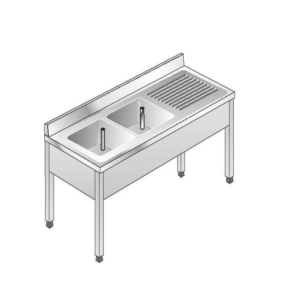 Lavello Acciaio Inox AISI 304 - 2 Vasche DX - Sgocciolatoio SX - Dim. 160x60x85 cm - con Alzatina