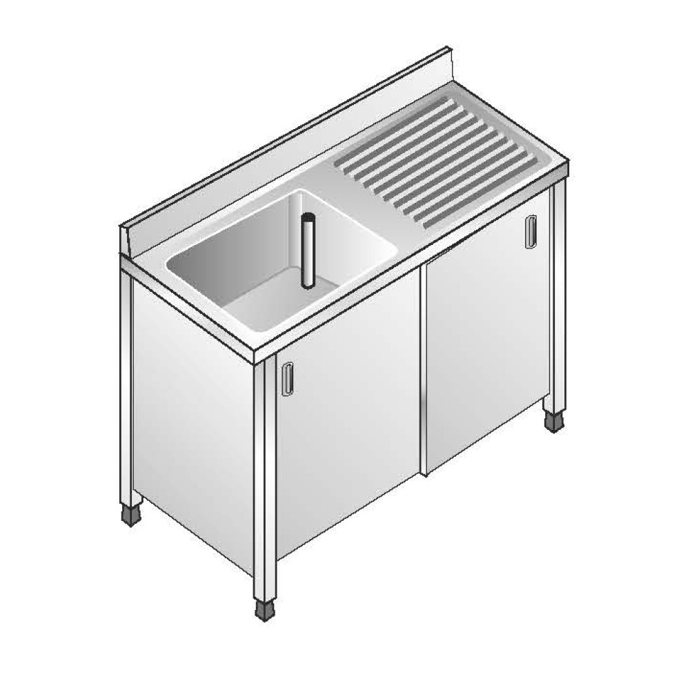 Lavello Acciaio Inox AISI 304 - 1 Vasca DX - Sgocciolatoio SX - Dim. 120x70x85 cm - con Alzatina -35%