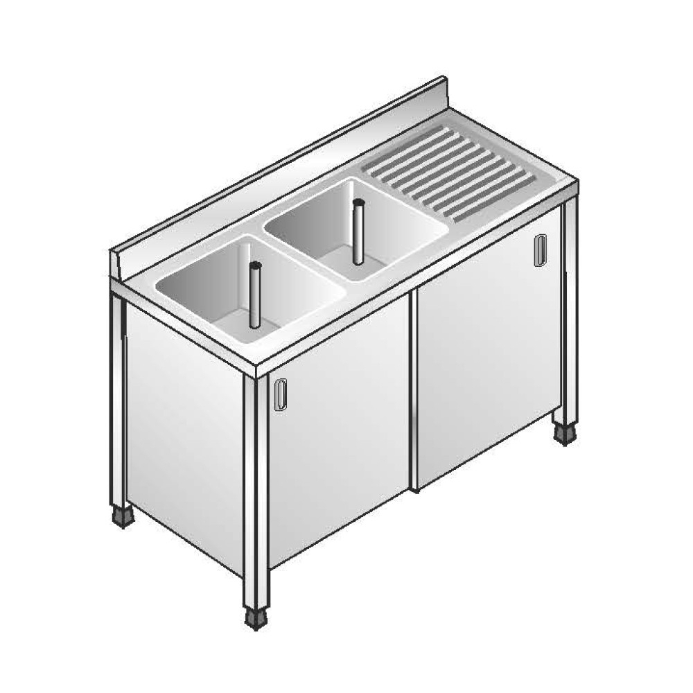Lavello Inox Armadiato AISI 304 - 2 Vasche - Dim. 120x60x85 cm - con Alzatina -35%